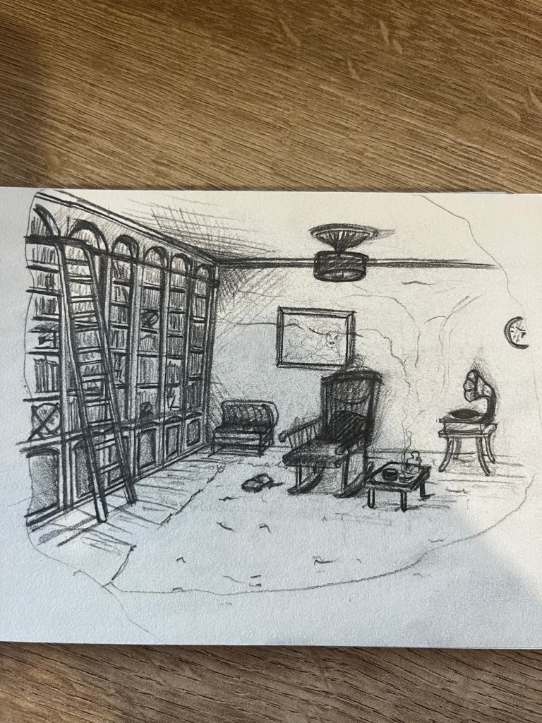 Le fauteuil à bascule se balançait doucement. C’était un bois de chêne foncé et chaleureux. Le haut du fauteuil et son assise était recouverts d’un tissu molleton blanc, et un coussin noir complétait parfaitement le tableau. Il y était bien, il pouvait se balancer des heures durant sans s’ennuyer une seule seconde. Quand on entrait dans la pièce, un salon aux lumières tamisées et aux murs crèmes, il y avait un vieux gramophone poussiéreux qui trônait au fond à droite, une bibliothèque en bois massif avec son échelle sur le mur de gauche, le fameux fauteuil à bascule au centre et une petite table basse en chêne qui l’accompagnait. Sur cette petite table un verre old fashioned était rempli au quart de whisky, et un cendrier en verre logeait quelques cadavres de cigarettes.